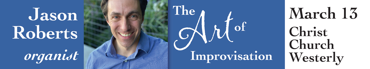 The Arts Commission of Christ Church proudly presents this one-of-a-kind musical treat: a performance of organ music focusing on improvisation. Jason Roberts is an award-winning master of the genre, and will bring his considerable talents to the Fisk organ in Christ Church, Westerly.