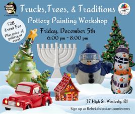 ??? Celebrate the season at Tapped Apple Cidery with Rebekah Cook Art! Embrace cherished holiday traditions and add a creative twist at our Paint-Your-Own Pottery Trucks, Trees and Traditions Workshop!